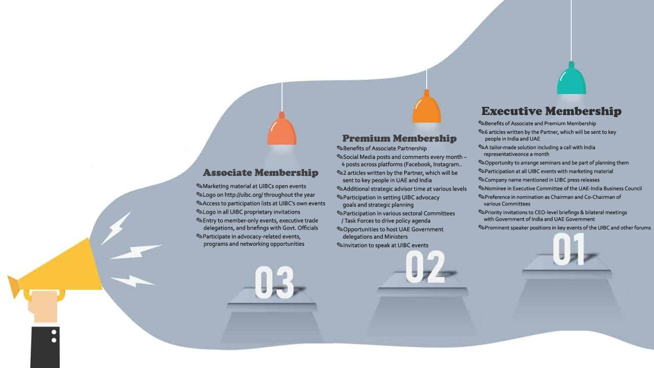 An Associate Membership includes: An Associate Membership is chosen when a company or organization is looking for increased visibility in the UAE-India corridor. This would include: